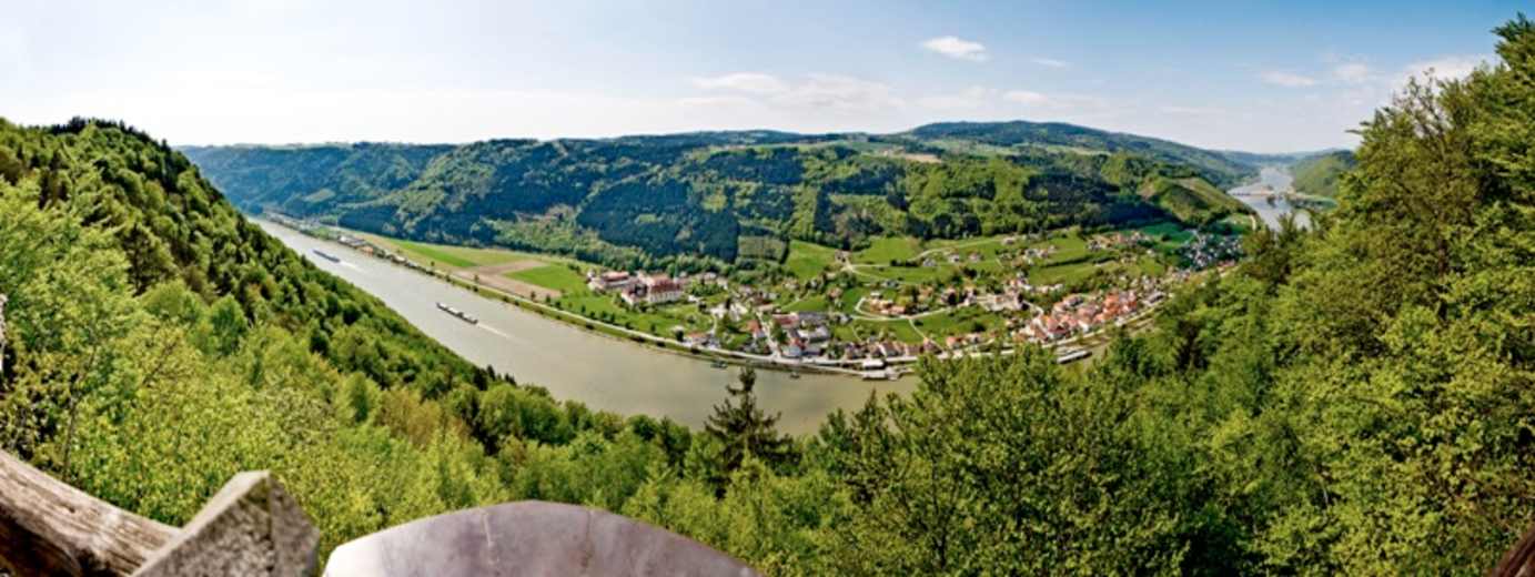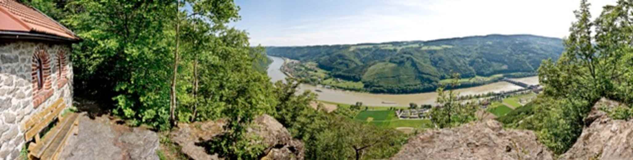 Am breiten Donaustrom geht es auf der ruhigen Uferstraße weiter bis zur Fähre von Engelhartszell. Steil führt von dort der idyllische Frauensteig, auch Schmugglerweg genannt, durch den bekannt schönen Mischwald der Donauleiten wieder hinauf auf das Hochplateau - nun das des Mühlviertler Hochlandes. Oben folgen wir am Waldrand der Talflanke stromabwärts und gelangen so zum sagenumwobenen Penzenstein, dem Erlebnishöhepunkt dieser Etappe! Die Felskanzel hinter seiner beliebten Waldkapelle eröffnet wundervolle Tiefblicke ins Donautal, vor allem auf Engelhartszell.