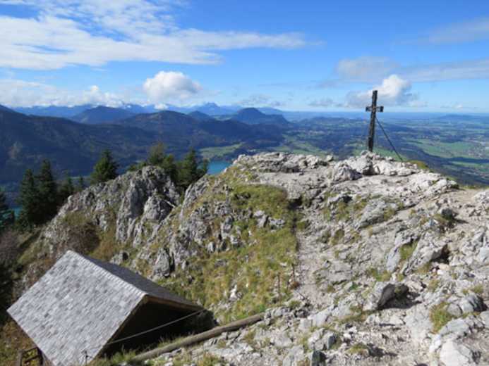 Die Tour startet im Ortszentrum von Mondsee und führt Richtung Schwarzindien entlang des Seeufers. In der Birkenalle überqueren wir die Bundesstraße und biegen beim Kulturgut Höribach in eine Kastanienallee ein. Oben angekommen führt der Weg entlang von wenig befahrenen Güterwegen zu einem Gehöft. Dort geht es durch ein Ziegengatter (bitte schließen) erstmals hinein in den Wald bis wir in der Ortschaft Obernberg ein weiteres Gehöft erreichen. Nach ein langgezogenen Kurve auf einem Güterweg biegen wir links auf eine Forststraße und nach wenigen Metern rechts auf einen Waldweg ein. Diesem Waldweg folgen wir stetig bergauf, bis zu einer weiteren Forststraße. Diese überqueren wir und folgen dem Waldweg bis wir das Gasthof Wartenfels erreichen. Dieses bietet sich vor dem anstrengenden Anstieg zum Schober für eine Rast nahezu an. Nach der Stärkung folgt der Anstieg zur Ruine Wartenfels, einer ehemaligen Raubritterburg mit genialem Blick Richtung Salzburg. Nach dem kurzen Abstecher zur Ruine erfolgt der Anstieg zum Schobergipfel. Der Wanderweg führt in Serpentinen stetig bergauf, garniert mit einigen großartigen Ausblicken auf den Fuschlsee. Achtung bei Regen oder Nässe, der Weg ist sehr anspruchsvoll. Im obersten Teilstück sorgen Seilversicherungen für Ihre Sicherheit. Oben angekommen genießen wir den traumhaften Blick auf bis zu sieben Seen. Der Abstieg folgt links neben der Schutzhütte unterhalb des Grates. Bereits nach einem kurzen Stück haben wir die Möglichkeit ein paar Meter hinauf zum nächsten Gipfelkreuz zu kraxeln - dem Frauenkopf. Hier bietet sich ein einzigartiger Ausblick auf den Fuschlsee und die Osterhorngruppe. Der Abstieg vom Frauenkopf erfolgt ebenfalls auf einem steinigen Wanderweg, teilweise über rutschige Schotterflächen - bitte Vorsicht - bis wir wieder auf den Wanderweg Richtung Fuschl am See treffen. Wer eine Stärkung dringend nötig hat, kann ein paar Meter zurück zum Gasthof Wartenfels gehen. Der Wanderweg nach Fuschl führt durch einen typischen Mischwald bis wir beim Golfplatz vom Hotel Ebner\'s Waldhof wieder freies Gelände erreichen. Nun ist es nicht mehr weit, bis zum Fuschlsee. Nutzen Sie die Gelegenheit, im Fuschlseebad einen Sprung in das glasklare Wasser des Fuschlsees zu wagen.