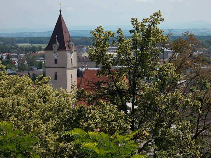 Weit schweifen hier die Blicke vom mystischen Ötscher im Mostviertel bis bin zum markanten Traunstein im Salzkammergut. Der hügelige Weiterweg erfolgt abwechslungsreich durch offene Kulturlandschaft und schattige Waldstücke. Bei der ungewöhnlichen Kalvarienbergkirche von Perg sind wir wieder am Rand des Mühlviertler Hügellandes angelangt - auf einem herrlichen Blickbalkon liegen uns die Stadt Perg und das Machland zu Füssen.