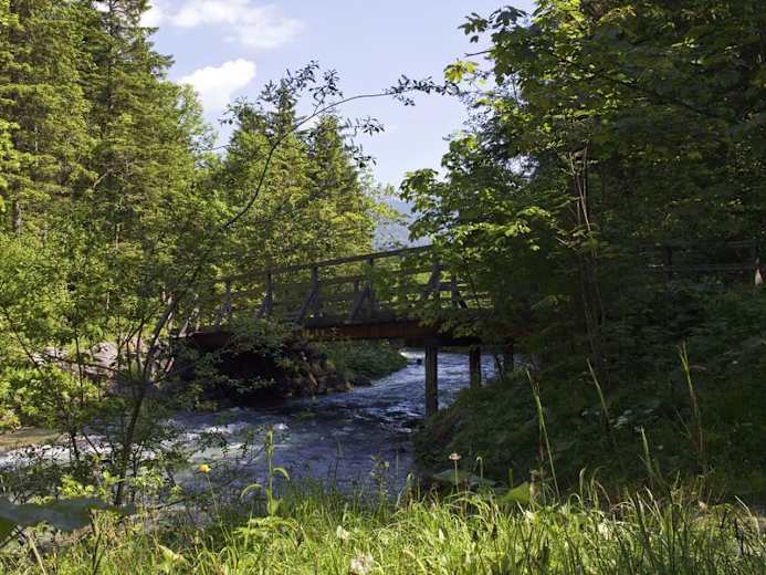 Von hier sind es nur mehr ein paar Minuten bis zur beeindruckenden Quelle des Flußes Steyr. Aus vielen hunderten Löchern entspringt die Steyr und ist innerhalb von wenigen Metern ein beachtliches Flüßchen.