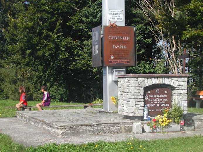 Von der Filialkirche Heiligenleithen südlich von Pettenbach führt der Weg zum Friedenskreuz am Oberkaibling, von dem man einen schönen Blick in das Oberösterreichische Voralpen und das malerische Almtal hat.