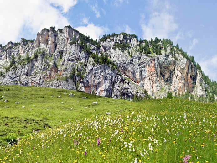 Von der Bergstation der Wurzeralm Bergstation wandern Sie zum Brunnsteinersee, bis dahin haben Sie eine Schotterstraße.Vom Brunnsteinersee beginnt ein steiler aber harmloser Anstieg zum Rotenwand Sattel und zur Roten Wand.