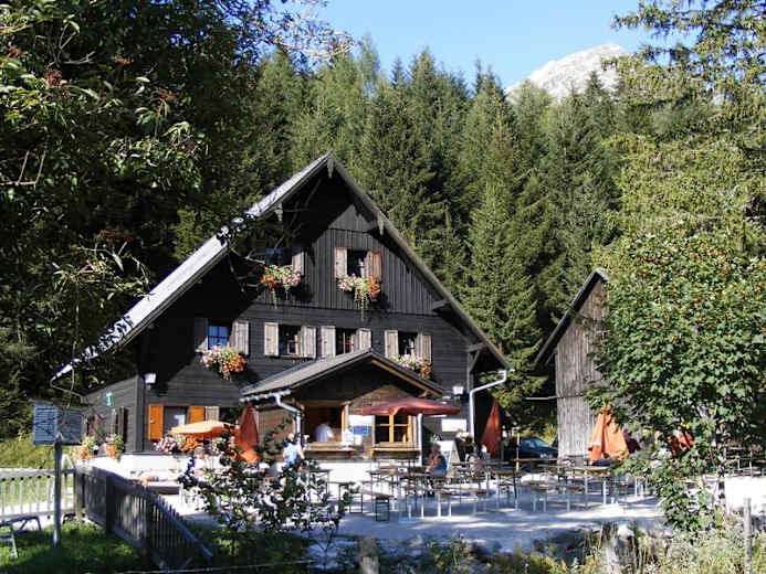 Beim Ziel angekommen, bietet sich eine Einkehr in der Bosruckhütte an. Neben Speisen und Getränken, bietet diese Hütte auch die Möglichkeit zur Übernachtung und ist außerdem Ausgangspunkt für unzählige Touren in der Region.