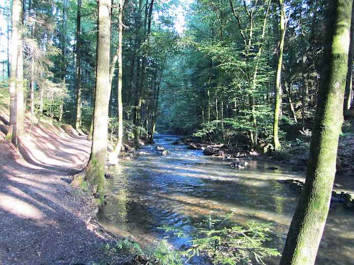 Man startet beim Parkplatz West (Friedhof) und biegt beim Blumengeschäft links ab Richtung Hierzenbergerstraße. Von dort folgt man immer dem Flussverlauf der Zeller Ache. Am Ende der asphaltierten Strecke ist es natürlich erlaubt das Betriebsgebiet der Firma AWD zu betreten, denn hier kann man auf einen wildromantischen Wanderweg nach rechts abbiegen. Nach etwa 1 km erreicht man auch schon das Ziel, die Erlachmühle.