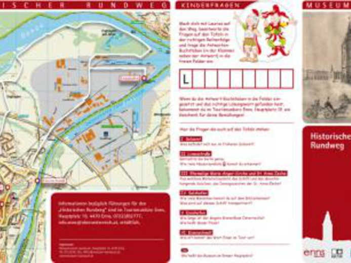 Historisch interessante und gemütliche Themenwanderung durch das Stadtzentrum von Enns an der Donau nahe der Grenze zwischen Oberösterreich und Niederösterreich. Entlang des Weges weisen Informationstafeln immer wieder auf historisch wichtige Ereignisse der Ennser Stadtgeschichte hin.