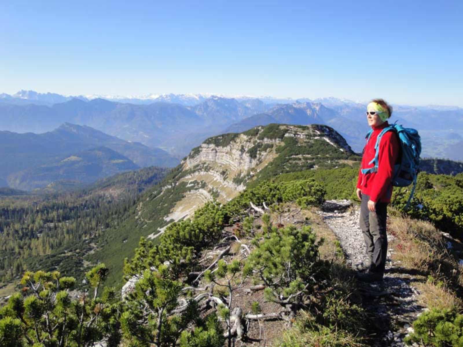 Bald endet der Wald und wir kommen in die Latschenzone. Haben wir den Schrottsattel (013°42’20“O - 47°43’36“N) mit einem Wegweiser erreicht, sind es nur mehr 20 Minuten zum Gipfel der Hohen Schrott (013°42’41“O - 47°43’40“N – 1.839 m).