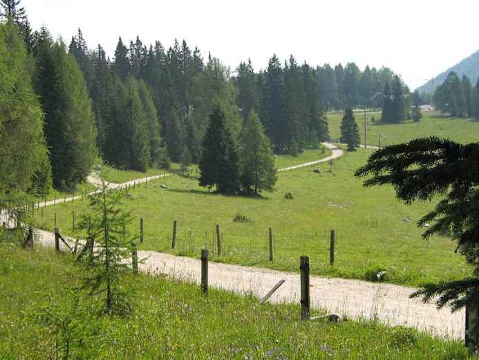 Der Rückweg steigt leicht an und führt über die im Sommer mit Blumen übersäten Almwiesen, vorbei am uralten Bergahorn, der als Verbindungsbaum nahe den Grundgrenzen Treffpunkt für die Sennerinnen und die Jäger war und sein schützendes Blätterdach über so manches Stelldichein ausbreitete.