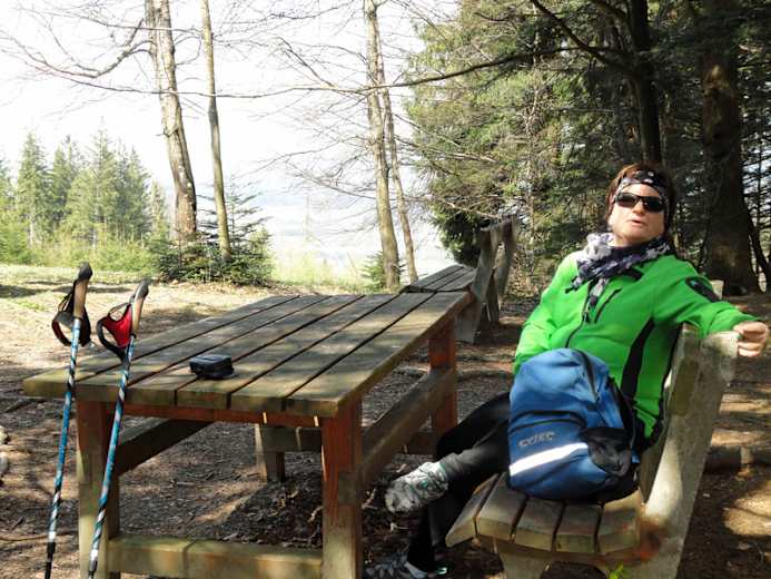 Unterwegs gibt es keine Einkehrmöglichkeit – genug Proviant mitnehmen. Auf dem Gipfel des Häfelbergs kann man auf dem „Platz der Geborgenheit“ gemütlich picknicken.