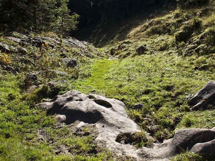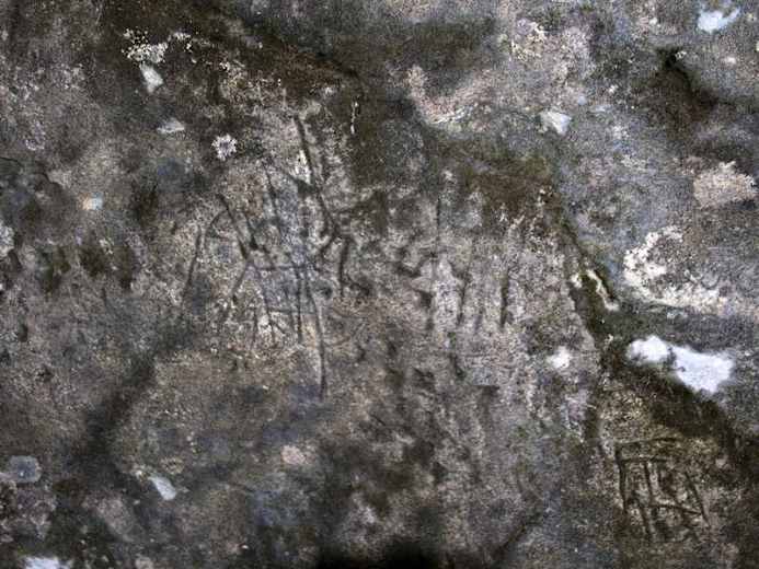 Auf dem Durchkriechstein sind mit dem „Mann im Turm“ und der „stilisierten Familie“ besonders bedeutende Felsritzungen zu sehen.