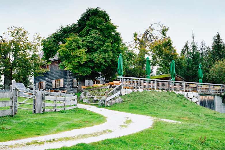 Gleich neben dem Bergsturzchaos, in dem sogar ein Mini-Matterhorn mit Gipfelkreuz zum Kraxeln lockt, erwartet den Wanderer eine herrliche Idylle, die schon die Maler der Romantik und auch die berggängige Kaiserin Elisabeth begeistert hat: Die gastliche Hütteneckalm mit ihrem berühmten Dachsteinblick.