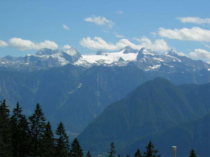 Gleich neben dem Bergsturzchaos, in dem jetzt ein Mini-Matterhorn mit Gipfelkreuz zum Kraxeln lockt, erwartet den Wanderer eine Idylle, die schon die Maler der Romantik und auch die berggängige Kaiserin Elisabeth begeistert hat: Die gastliche Hütteneckalm mit ihrem berühmten Dachsteinblick.