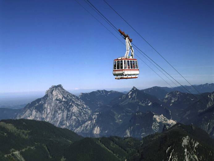 Nachdem man bequem mit der Feuerkogelseilbahn das Plateau erreicht hat, sucht man sich den gut beschilderten Weg zum Helmesgupf. Vorbei am Heumahdgupf und Steinkogel, erreicht man kurz vor dem Helmesgupf die Abzweigung zum Kaiserweg (Nr. 837). Dieser Steig führt durch das verkarstete, latschenbedeckte „Gletschtal", von dem aus das tief liegende Trauntal sichtbar ist. Ein Hindernis stellt eine etwa 30 m hohe Felsstufe zur Ofenhöhe (1594 m) dar, deren Steig jedoch gut mit Drahtseilen gesichert ist. Nach dieser kurzen „Kletterpartie" gelangt man mühelos zur Vorderen Spitzalm (Jagdhaus). Der Weg ins Trauntal (Nr. 830) schlängelt sich in vielen Serpentinen durch einen steilen Hochwald, bis man auf eine Forststraße gelangt, die bei der Miesenbachmühle in die alte Bundesstraße B 145 mündet. Ebensee erreicht man am besten mit der Eisenbahn; die nächst gelegene Haltestelle liegt in der Ortschaft Steinkogel.