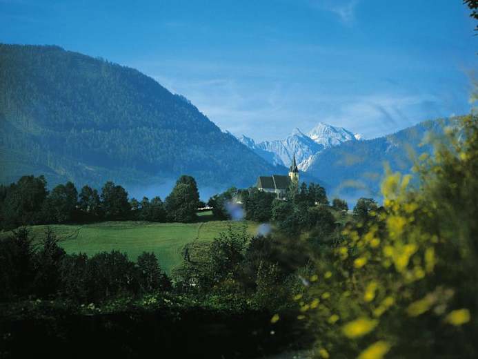 Gemütliche Wanderung in der Region Pyhrn-Priel in Oberösterreich. Die Tour im Traunviertel führt von Klaus durchs Tal der Steyr zur Wallfahrtskirche Frauenstein in Molln. Sie wurde auf einem 502 m hohen Felsen errichtet und ist berühmt für ihre um 1515 geschnitzte Schutzmantelmadonna. Wunderbare Blicke bieten sich auf das Sengsengebirge, das hinter der Kirche empor ragt.