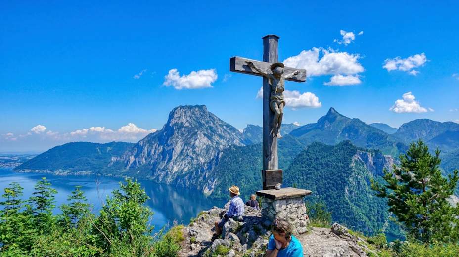Kurze, aber sehr abwechslungsreiche Wanderung in Oberösterreich von Siegesbach auf den Kleinen Sonnstein (923 m) bei Traunkirchen. Die Tour eröffnet tolle Ausblicke auf den Traunsee und die umliegenden Gipfel der Salzkammergut-Berge. Die urige Sonnsteinhütte direkt unter dem Gipfel bietet eine nette Einkehrmöglichkeit mit grandiosem Panorama.