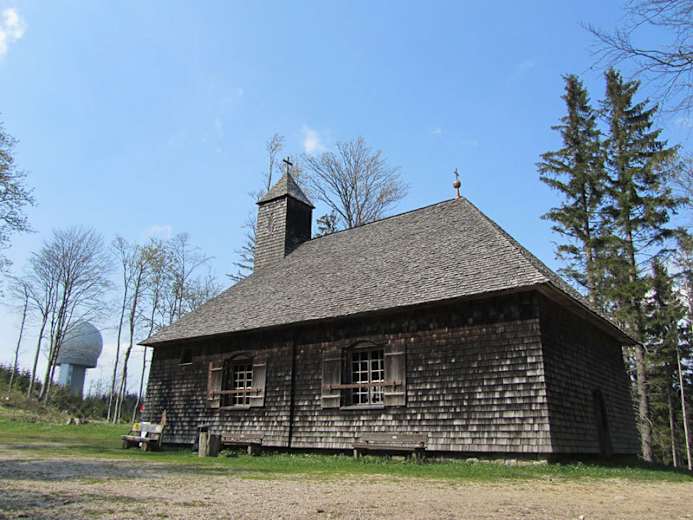 WanderinformationWegbeschreibung:Die letzte noch vollständig erhaltene Holzkirche Österreichs ist dem heiligen Koloman geweiht. Dieser soll ein irischer Pilger gewesen sein, der im Jahre 1012 bei Wien den Märtyrertod erlitt. Der Waldberg, auf dem das kleine Gotteshaus steht, gilt jedenfalls als uralter Kultplatz - sogar eine heilige Quelle sprudelt dort oben. Recht profan sind dagegen die Radarkuppeln, die gleich darüber den (abgesperrten) Gipfel dominieren.