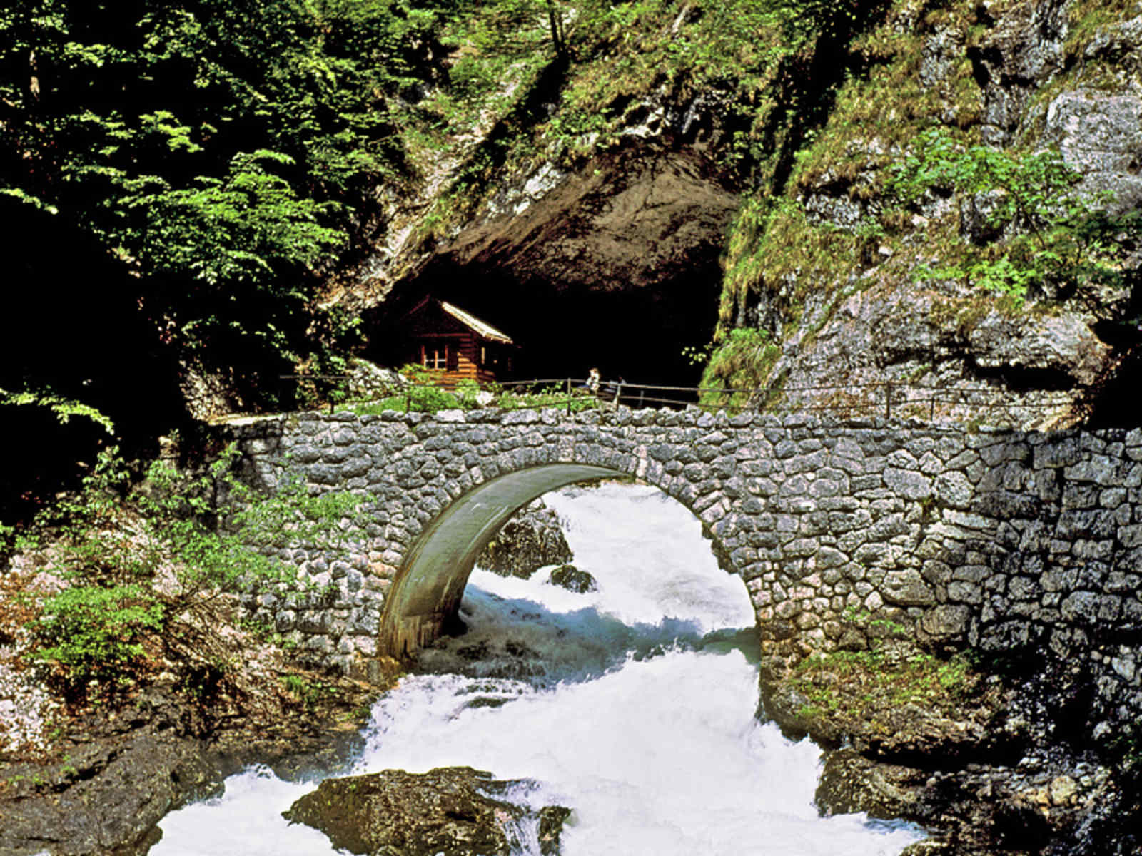 Diese Bahntrasse wurde im Jahre 1897 gänzlich vom Hochwasser weggespült und dann wesentlich höher verlegt. Durch den alten Eisenbahntunnel, der als einziges Objekt diesen Wassermassen trotzte, erreichen wir die am wildbrausenden Wasser gelegene Koppenbrüllerhöhle. Die Koppenbrüllerhöhle ist eine wasserführende Tropfsteinhöhle, die von Ende April bis Ende September geöffnet ist. (Führungen täglich von 10:00 Uhr bis 16:00 Uhr).Bis zum Ende des eigentlichen Koppentalwanderweges sind es nun nur mehr 10 Minuten Fußweg. Hier besteht eine Weiterwandermöglichkeit von ca. 30 min (hin und zurück) zum idyllisch gelegenen Koppenwinklsee und zur Koppenwinklalm.