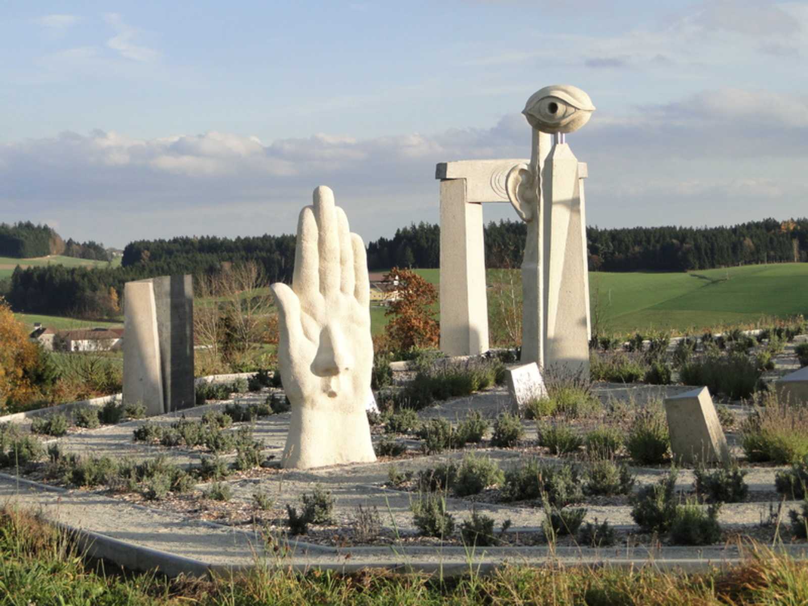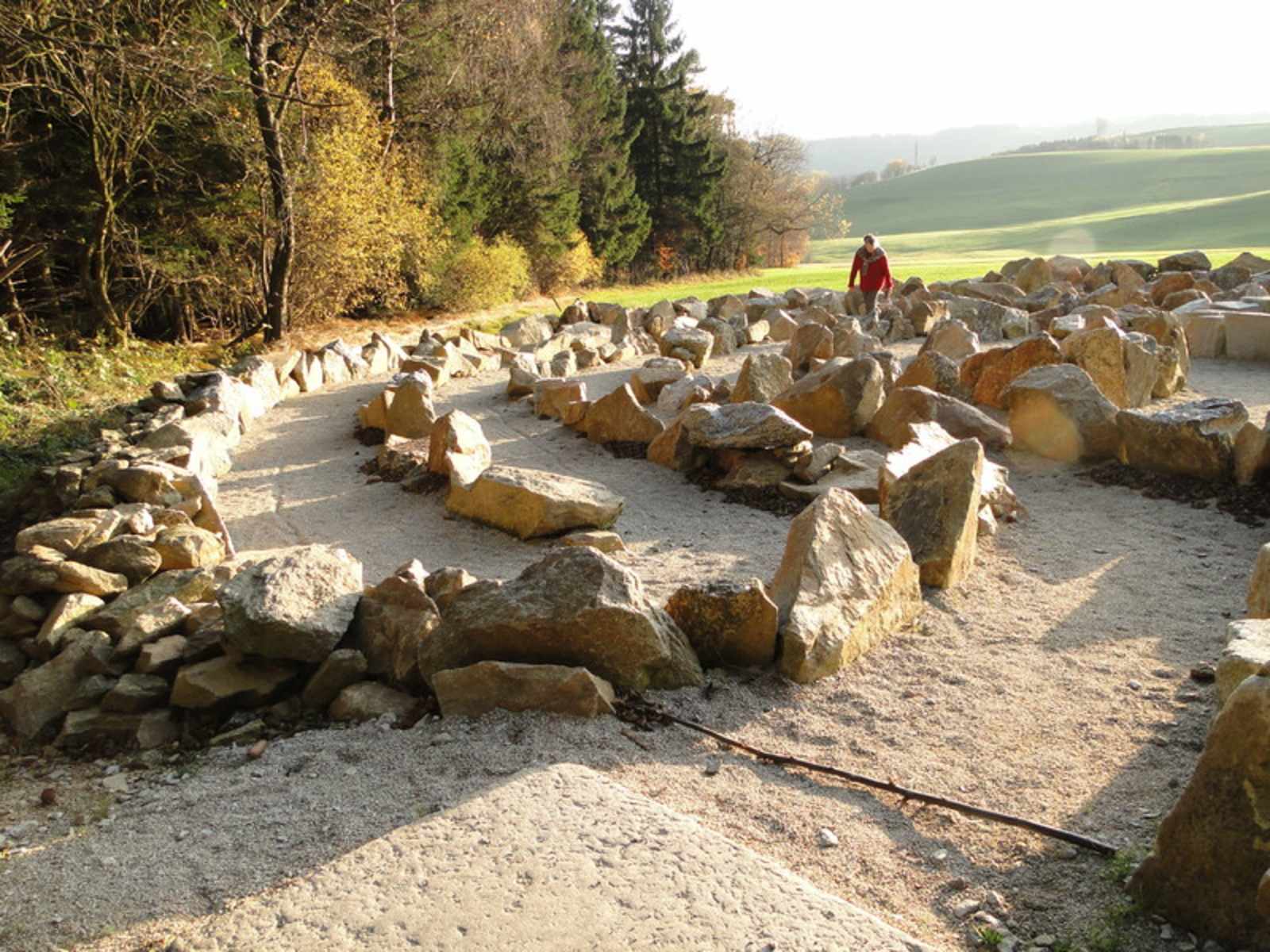 3. KunstLabyrinth der Verwandlung: Gotisches 8-eckiges Labyrinth bei den Drei Linden, der alten Gerichtsstätte des Schlosses Marsbach, mit Skulpturen von Prof.Mag.art Gerhard Wünsche.Das dritte Labyrinth findet seinen Platz bei den „Drei Linden“. Dieser Ort erfuhr eine starke Wandlung durch den Sturm „Cyrill“ und so soll das Labyrinth dazu anregen, über die „Verwandlungen“ im eigenen Leben nachzudenken. Da verändern sich plötzlich Sichtweisen, da tun sich nie da gewesene Ausblicke auf.