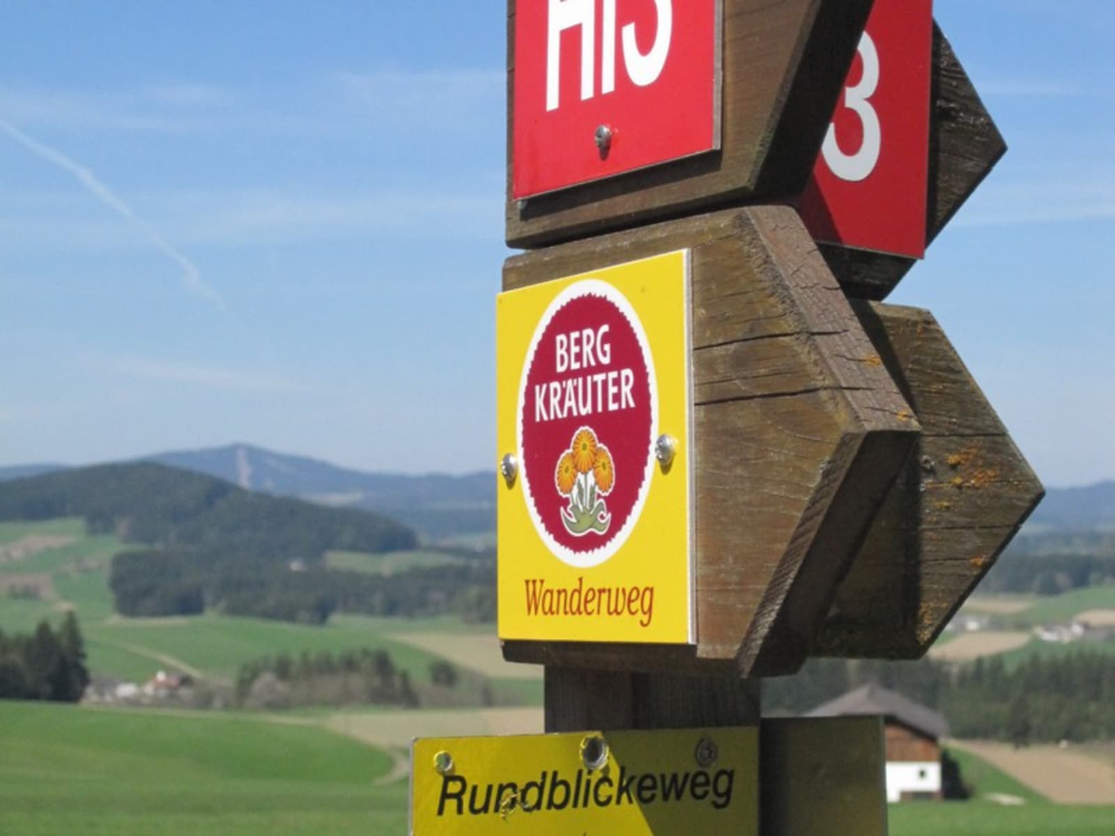 Einfache und flache Wanderung auf dem „Luag amoi - Weg” in Hirschbach im Mühlkreis im Mühlviertel Oberösterreichs. Dieser auch als Walkingstrecke geeignete Weg führt auf rund 5 km über den Nordwaldkammweg und mit Blick auf Schneeberg und Ötscher, nach etwa 90 Minuten wieder zurück zum Ausgangsort.