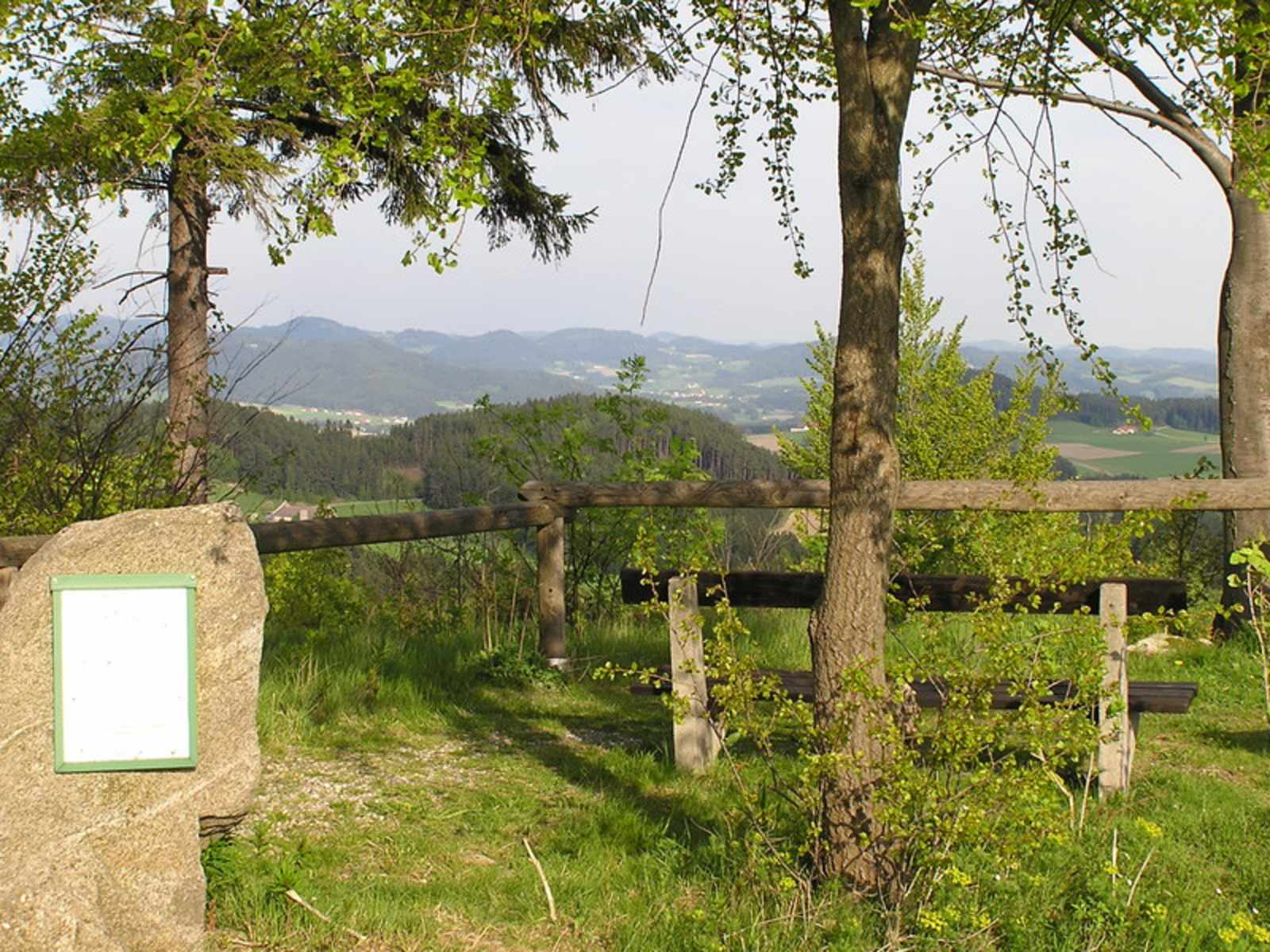 Ein kurzes Stück auf der Straße Richtung Schenkenfelden, dann rechts in Richtung Kirchberg, beim Brandstetterhof vorbei mit Blick auf Hirschbach. Eine kurze Strecke am Nordwaldkammweg, mit Blick auf den Flugplatz und auf den Sternstein (1.122 m)! Weiter geht´s übers Vierhöfer zum Aussichtsplatz Luag (781 m). Bei guter Fernsicht Aussicht bis zum Ötscher (1.893 m) und Schneeberg (2.076 m) in NÖ und das östliche Mühlviertel. Weiter über Kirchberg, zurück nach Hirschbach-Ort.