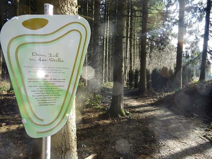 Der Weg zum ICH in Sankt Agatha im Hausruckviertel Oberösterreichs ist eine sehr kurze Wanderung für welche man sich allerdings viel Zeit nehmen sollte. Auf einer Reise von Station zu Station lädt der Weg zur innerlichen Ruhe und zum Nachdenken ein. Völlig entschleunigt und entspannt erreicht man nach den zweieinhalb Kilometern den Etzinger Hügel nördlich von Agatha.