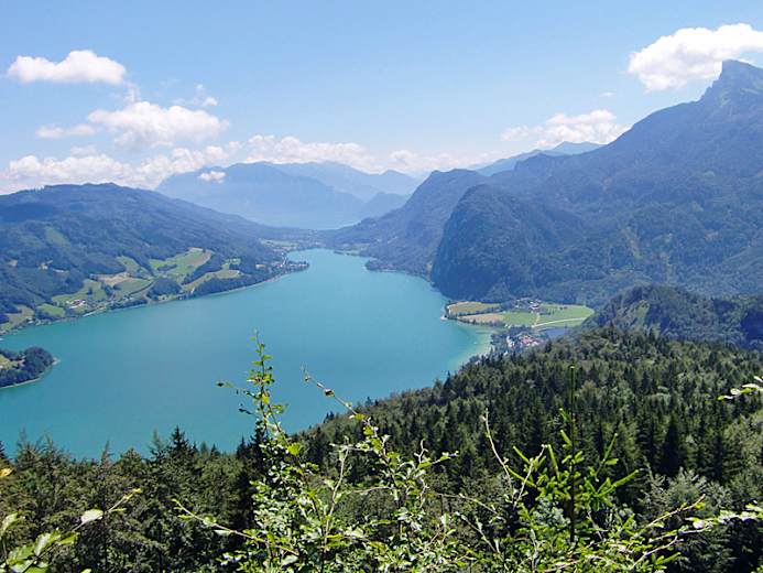 Vom Mondsee geht es auf einem Steig meist durch Wald hinauf zum Gipfelfelsen des Almkogels, dann bergab auf breiteren Wegen zum Bauernhof Obenau und weiter zu den sehenswerten Steinklüften, die durch einen gewaltigen Felssturz entstanden sind. Von dort ist nicht mehr weit ins Zentrum von St. Gilgen.