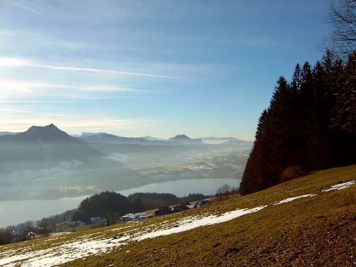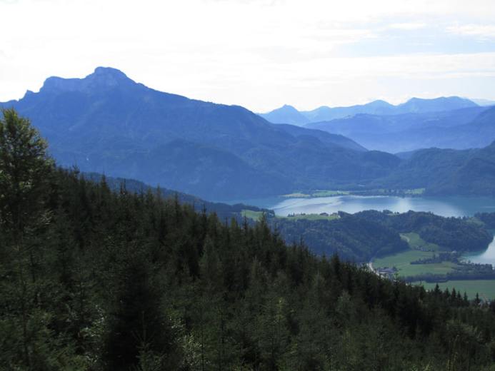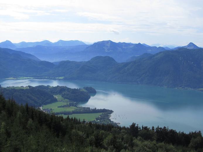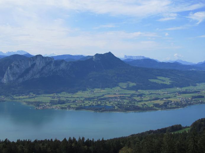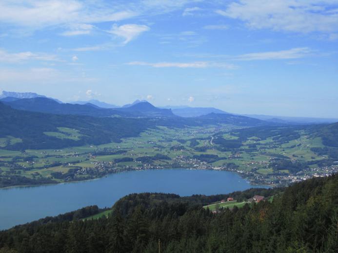 Wandern in den herrlichen Salzkammergut-Bergen: Von Mondsee geht es auf den Kulmspitz mit 1095 m Seehöhe, von wo man die Aussicht über das oberösterreichische Tal genießen kann, hinunter kommt man nach Oberwang.
