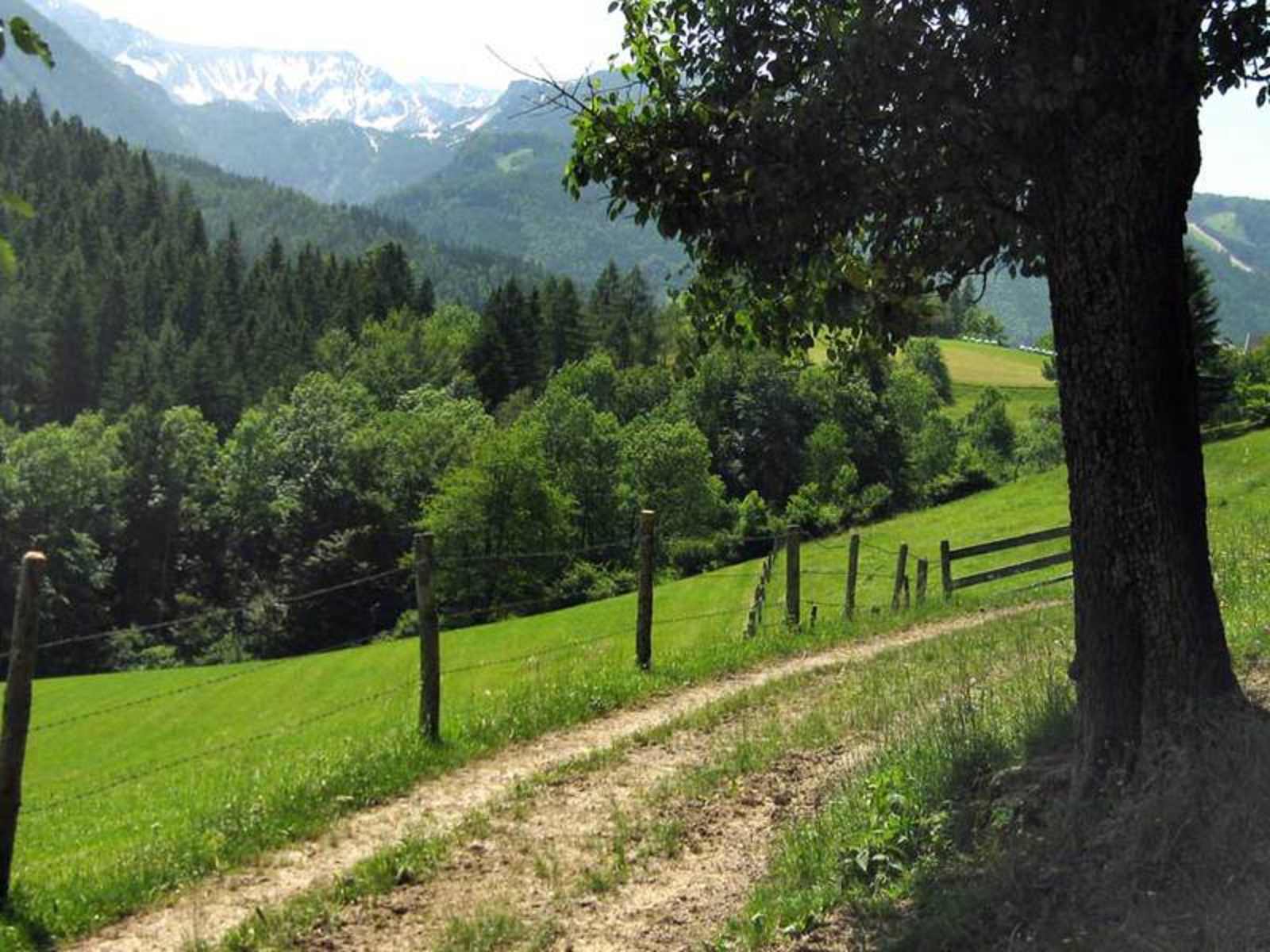 An der windgeschützten „Sunnseitn“ erwärmt sich der Boden rasch und lässt die Wiesen nach dem Winter etwas schneller ausapern als anderswo, sodass dort Obst, Gemüse und Blumen etwas früher und üppiger gedeihen. Dort reifen auch die alten widerstandsfähigen Apfel- und Birnensorten am besten, aus denen die Bauern auch noch heute ihren unverwechselbaren Most selber pressen. Vorbei am Bruderhof führt der Weg beim Immerl auf der asphaltierten Straße hinunter zum Eselsbach und auf der Gegenseite am Fuße des Steyrsberges (1.007 m) wieder hinauf zum Hof des Friedlbauern und zum Lugis.