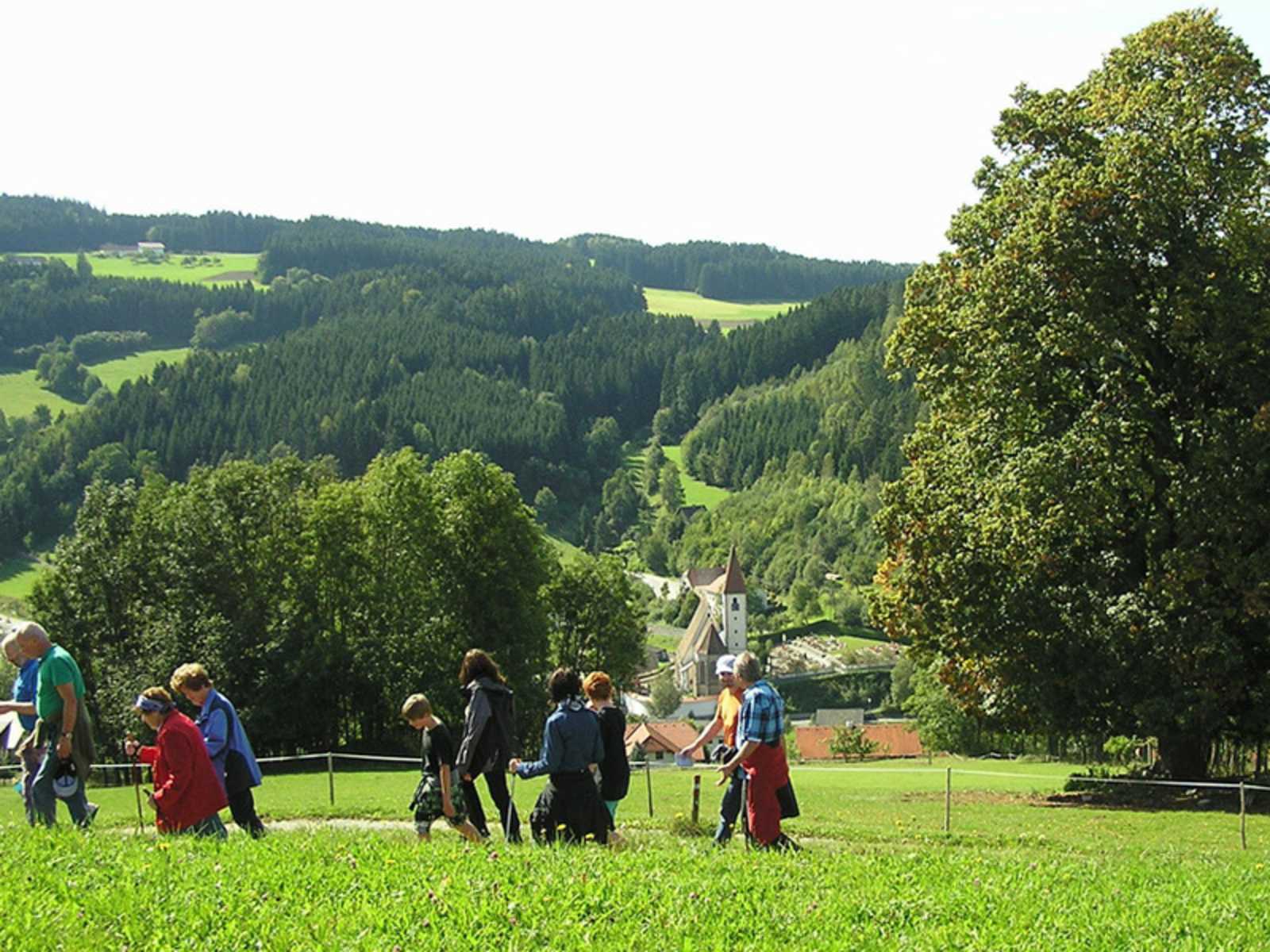 Auf diesem Themenwanderweg werden verdienstvolle MusikerInnen, und Komponisten aus Hirschbach vorgestellt. Bei der Kreuzung links Richtung Guttenbrunn, nach ca. 100 m rechts über den Steig nach Kirchberg, beim Himmelbauer (Nothelferhäusl), Kranzlbauerhof vorbei, weiter über die Moarschlucht´n.Schöne Aussicht nach Freistadt, St. Peter, St. Michael, Grünbach! Von Auerbach- über Grünbrunn, Holzwies Binder, zurück über die Hubertuskapelle nach Hirschbach-Ort.