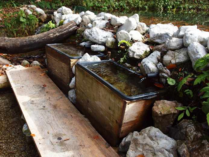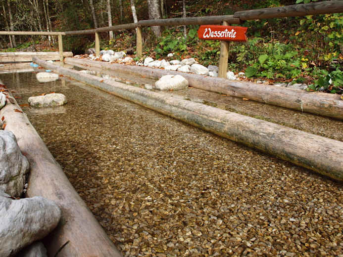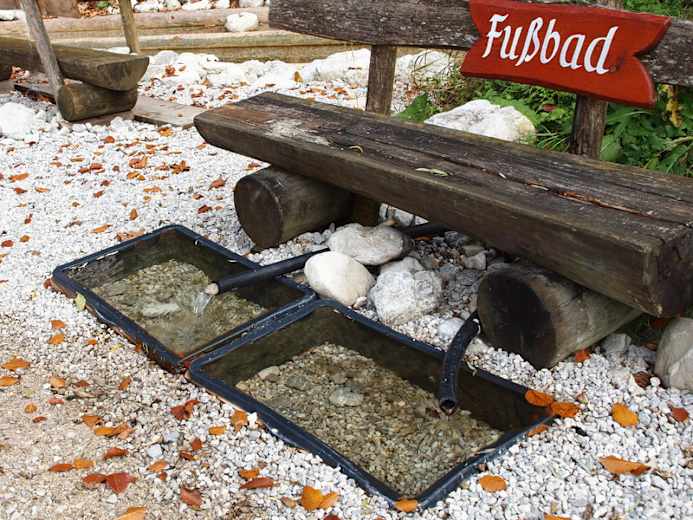 Die Anlage wurde ausschließlich mit in der Natur vor Ort vorhandenen Materialien Holz, Steine, Schotter, Erde, Kräuter und Gebirgsquellwasser in den Mörchenwald mit den künstlerisch hochwertig dargestellten Grimm-Märchen integriert gebaut.Hinweise zur richtigen Anwendung auf beschrifteten Holztafeln!ELEMENTE..... Bewegung - Wasser - Kräuter - Ruhe und KraftELEMENT BEWEGUNG• 2 km Märchenwald - Rundweg mit einigen leichten An- bzw. Abstiegen, vorbei an den lebensgroßen, künstlerisch dargestellten Märchenstationen durch Naturmischwald, geflutet von würziger, sauerstoffreicher Wald- und Gebirgsluft.• Barfußbereich auf Naturmaterialien, Rundhölzer, Schotter, Tannen- und Fichtenzapfen und Nadeln, Hackschnitzel.• Der steinige Weg – griffige Bachsteine in Schrittabständen im Naturgelände verlegt, zur Schulung von Blick, Geschick und Trittsicherheit.• Die Balancierbäume – lange, naturbelassene, am Naturboden verlegte Fichtenstämme, zur Schulung des Balancegefühls• Der Hackschnitzelweg – Abzweiger vom Wanderweg ins Naturgelände – über Baumwurzelstufen auf eine kleine Anhöhe, im Naturwald zwischen Bäumen, hin und her – auf und ab, und über eine Steilstufe wieder zum Weg hinab. ELEMENT WASSER• Wassertreten – mit Baumstämmen eingegrenzter, mit Bachschotter aufgeschütteter und mit ca. knöcheltiefem Gebirgsquellwasser gefluteter Bereich – eingefasst mit Haltestangen bzw. im Wasserbett liegende Natursteine zum Raufsteigen, falls das ca. 10° Wasser einmal etwas zu kalt wird. Nach dem Abtrocknen gibt es ein wunderbar warmes und belebendes Gefühl in den Füßen.• Armbad, Fußbad – permanent mit Quellwasser geflutete Wassertröge für die Wasseranwendung an Armen und Beinen. Die richtige Anwendung ist den Kneipptafeln beschrieben.• DER SCHINDLBACH KRÄUTERBERG• gebaut aus Steinen, Baumstümpfen, Schotter und Erde, mit dem Baumwurzelkreuz auf 608 m Seehöhe, bepflanzt mit in der Natur wachsenden Kräutern, welche auf beschrifteten Bachsteinen beim Namen genannt werden.ELEMENT RUHE UND KRAFT• Die beiden Ruhe- und Kraftplätze „Schwalbenmauer und Dornröschen“ wurden unter fachlicher Kompetenz von Frau Mag. Waltraud Ruth vom Österr. Kneippbund auf Grund ihrer besonders schönen, ruhigen, von würziger Gebirgsluft gefluteten Lage als ideal geeignete Standorte ausgewählt. Auf beschrifteten Holztafeln erfährt man auf einfache, verständliche Weise, wie man Ruhe und Kraft tanken kann.