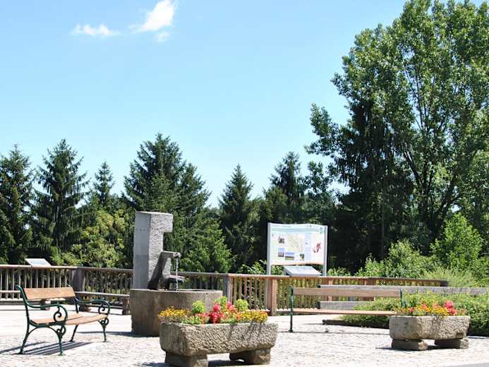 Ausgangspunkt: Aussichtsplattform vor dem Gemeindeamt - vorbei an der Kirche, bei der Volksschule rechts entlang des Märchenwanderweges - ab km 0,79 Beschilderung Nordic-Walking-Strecke bis Ortschaft Achleiten - Bushaltestelle - Querung der Bezirksstraße - Schotterstraße Richtung Hütt - 500 m nach km 3,77 rechts in die Forststraße Dudlbach (Donausteig) bis zum Ausgangspunkt.