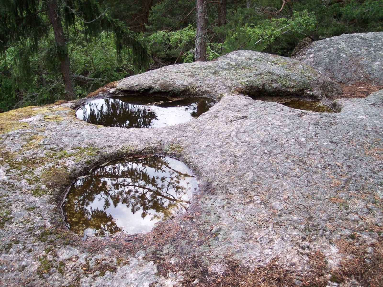Angenehme und familienfreundliche Rundwanderung auf dem Opferschalenweg beim Wimberg nahe Sankt Leonhard im Mühlviertel Oberösterreichs. Auf knapp viereinhalb Kilometer führt die Wanderung vorbei an teils mit Wasser gefüllten Naturopferschalen.