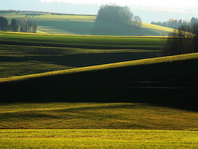 Durch sanfte grüne Wiesenhügel, vorbei an einem Bächlein - das ist Genuss.