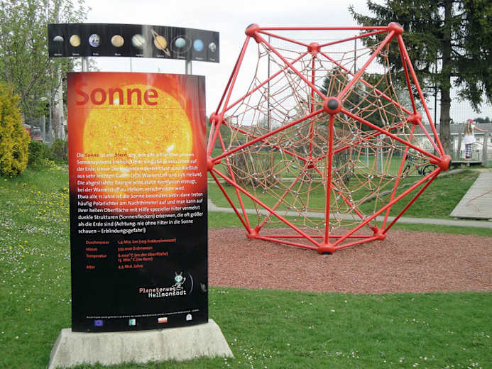 Neben den vorgestellten Planeten befinden sich entlang des Themenweges auch zahlreiche Spielplätze und Spielgeräte für Kinder.