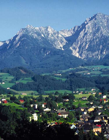 Nun folgen Sie der Straße immer weiter und gelangen direkt zurück zum Ausgangspunkt in Roßleithen. Die Geschichte der Gemeinde Roßleithen ist mit der Sensenproduktion eng verbunden. Noch heute werden von der Firma Schröckenfux GmbH Sensen für die ganze Welt geschmiedet. Im Rahmen des Sensenfestivals 2004 wurde der "1. Roßleithner Sensenthemenweg" eröffnet. Mittlerweile sind weitere Sensenthemenwege entstanden. Entlang der Wanderwege, die mit verschieden-färbigen kleinen Sensen gekennzeichnet sind, erfahren Sie mehr über die verschiedenen Arten von Sensen und interessante geschichtliche Gegebenheiten.Viele herrliche Ausblicke auf sämtliche Berggipfeln der Region sind auf Informationbildern beschrieben.
