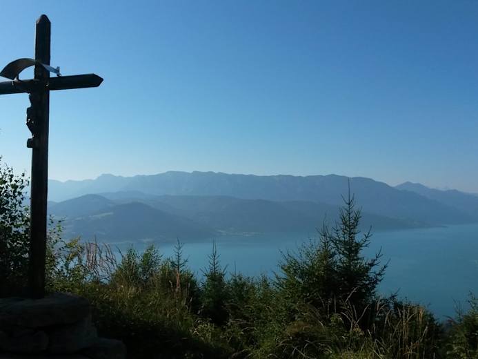 Start dieser Tour ist die Atterseehalle. Hier geht es auf dem Walderlebnispfad Richtung Nordosten. An der nächsten Abzweigung links, folgen dem Weg Nr. 4 durch den Wald. Nach kurzer Zeit treffen wir bei Berg im Attergau auf einen querenden Weg, der uns linkes weiternach Alkersdorf führt. Von hier gelangen wir über Palmsdorf an die Südseite des Buchberges von wo wir herrliche Ausblicke über den Buchbergrücken bis zum Schlossberg genießen. Hier befindet sich das Fundament einer Fliehburg, die bereits im Mittelalter errichtet wurde. Anschließend geht es wieder entlang des Walderlebnisweges und des Sonnleitenweges zum Ausgangspunkt zurück.