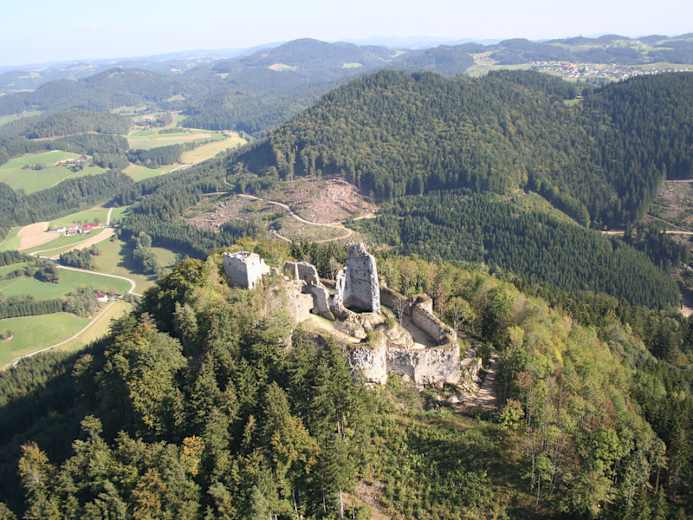 Wer nach etwa 110 Minuten und knapp 700 Höhenmetern die Ruine erreicht hat, der wird an schönen Tagen mit Sicht auf weite Teile Oberösterreichs belohnt.