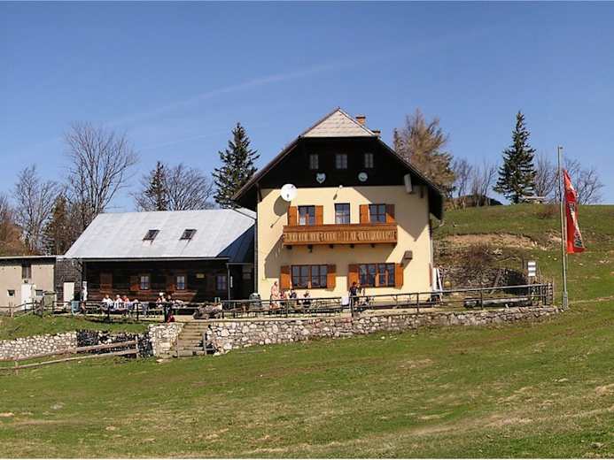 Nach einemkurzem Straßenstück geht es weiter etwas steiler bergauf Richtung Gasthaus Klausriegler (Gehzeit bis zum Gh ca. 1 h). Von hier führt der Wanderweg weiteranfangs über die Wiese bergauf bis zum Schoberstein und zum Schobersteinhaus (1.285 m)