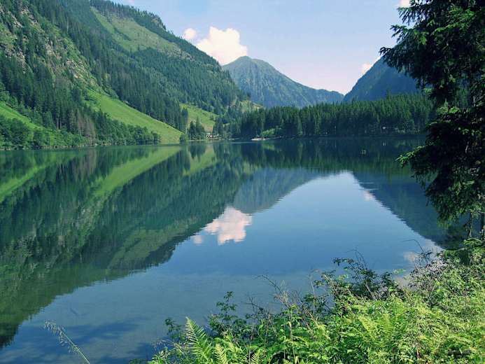 Der idyllische Schwarzensee ist das Ziel dieser leichten Wanderung in den Salzkammergut-Bergen in Oberösterreich. Dieser fischreiche Bergsee liegt auf einem Hochplateau zwischen dem Wolfgangssee und dem Attersee auf 715 m und ist bis zu 54 m tief. Start und Zielpunkt der Tour ist in Unterach am Attersee.