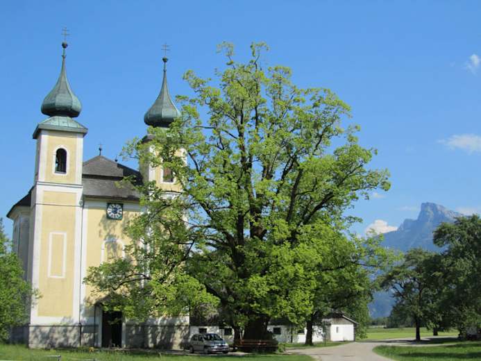 Wir gehen durch die Alleestraße zum See, halten uns rechts, gehen vorbei am Alpenseebad und Parkplatz zur Monseestraße, der wir nach links folgen. Ab Sparmarkt gehen wir am beschilderten Wanderweg (Nr. 10 bzw. Nr. 34) in Richtung St. Lorenz bis zum Strandbad Schwarzindien.Hier überqueren wir die Bundesstraße und folgen der Via-Nova-Beschilderung. Über den kleinen Höhenrücken erreichen wir auf der Straße die Wagnermühle. Hier überqueren wir die Fuschler Ache und wandern auf der Straße der Ache entlang zur Kirche St. Lorenz. Diese Filialkirche der Pfarre Mondsee ist einen Besuch wert.Eine Stärkung auf dieser längeren Tour gibt es 500 m weiter im Gasthaus Drachenwand. (Öffnungszeiten beachten!)Am Rückweg gehen wir von der Kirche wieder der Fuschler Ache entlang in Richtung Wagnermühle, biegen aber nach ca. 700 m rechts ab zur Bundesstraße. Diese überqueren wir, wenden uns nach links und sehen gleich nach der kleinen Brücke die Beschilderung des Wanderweges (Nr. 34), der entlang des Golfplatzes nach Schwarzindien führt. Nach der Einfahrt zum Golfplatz geht es rechts in Richtung Seeufer. Wir folgen der Straße durch die Siedlung, kommen wieder zum Strandbad Schwarzindien und zur Mondseestraße. Dieser entlang geht es zurück in den Ort.Diese etwas längere Wegstrecke kann verkürzt werden durch die Anfahrt per Pkw oder Bus zum Strandbad Schwarzindien, ev. auch per Schiff zum Gasthaus Weiße Taube.Diese Tour inkl. Beschreibung wurde uns vom Alpenverein Österreich, Sektion Mondsee, Frau Obfrau Annelu-Ilse Wenter zur Verfügung gestellt. Fragen Sie nach dem Wanderbuch \"Wanderungen ab Mondsee\", wo Sie viele verschiedene Wanderungen inkl. Beschreibung finden. Erhältlich im Tourismusverband MondSeeLand Mondsee - Irrsee zum Preis von EUR 5,-.