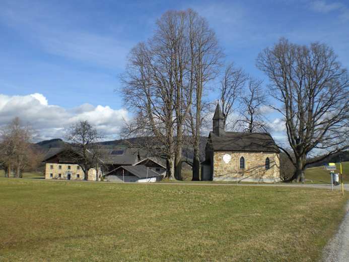 Folgen Sie dem Symbol des Tannenbaumes. Den nächsten halben Kilometer gehen Sie die Straße entlang und biegen anschließend links ab. Folgen Sie der Straße Richtung Ebnatbauern. Nach den Ebnatbauern wandern Sie gerade weiter bis zum Hochsitz in den Wald zur Vöckla. Entlang der Vöckla geht es bis Harpoint. In Harpoint links abbiegen, dem Weg folgen bis Sie zur Lindenbauernkapelle kommen. Anschließend geht es über Bauernstraßen nach Lindau. Durch Lindau durch, die Straße überqueren und danach wieder links. Nach der Durchwanderung des kleinen Grabens kommen Sie zum Mostsschenke „Zellgraber“. Ca. 200 m nach dem „Zellgraber“ an der Wegkreuzung gehen Sie links ca. 1 km den asphaltierten Weg entlang bis zum Busunterstand auf den Forstweg. Es geht ein Stück bergauf, dem Waldrand entlang bis zum Auer-Stadl. Nach ein paar Minuten sind Sie auf dem Weg, den Sie am Anfang genommen haben, ein Stück die Mondseebergstraße bergab bis zum Ausgangspunkt, zurück zum Aussichtsparkplatz.