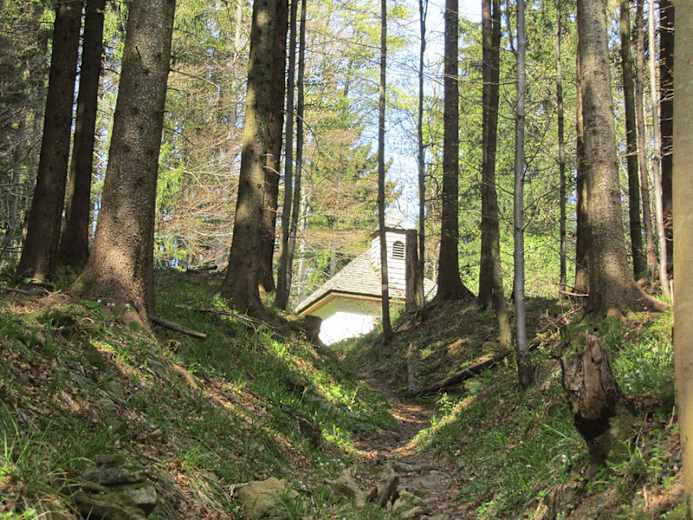 Beim Gasthof Riesnerhof starten und sich rechts auf die Asphaltstraße halten. Die folgenden Serpentinen kann man über einen Wanderweg abkürzen, bevor man bei der Seegruber Kapelle noch einmal 150m auf einer Straße zurücklegen muss. Beim Waldrand nach rechts in den Wald abbiegen und dem Wanderweg ca. 30min, bis man Radstattkapelle erreicht, folgen.