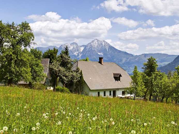 Eine kurze, leichte Wanderung führt einen von Vorderstoder im Toten Gebirge auf die Anhöhe am Tamberg zum Bauernhof Hunger.