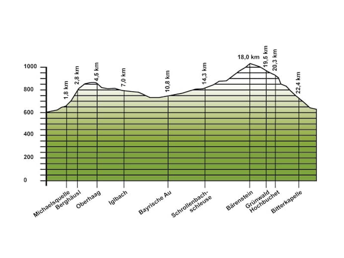 Schöne Wanderung mit herrlichen Ausblicken auf Aigen-Schlägl in der Region Böhmerwald (Mühlviertel/Oberösterreich). Höhepunkte auf der Strecke sind die mächtigen Granitfelsen des Bärensteines und des Hochbuchet- und Liebesfelsens. Dies sind zugleich (herrliche Aussichtspunkte. Weiters führt der Weg durch das Hochmoorgebiet Bayrische Au, einer äußerst interessanten Landschaft.