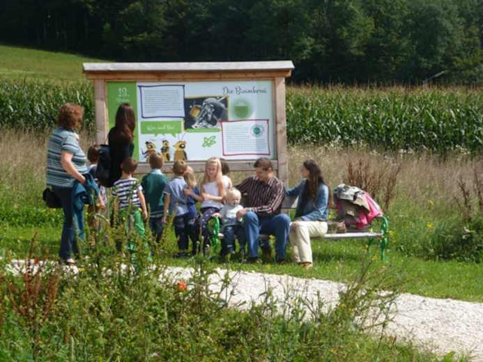 Der Bienenlehrpfad ist jederzeit frei zugänglich, wöchentliche Führungen für Kinder, Erwachsene und Gruppen. Die Wanderung führt Sie entlang der Attergau-Bahn auf einem Wanderweg vorbei an blühenden Wiesen und Feldern. Rechts zeigt sich der Hausberg von Attersee – der Buchberg – in seiner ganzen Pracht, während sich linker Hand nach und nach das Naturschutzgebiet des „Reinthaller Moos“ öffnet. Nach bereits 15 Gehminuten haben Sie den Bienenlehrpfad erreicht, der Sie nun dazu einlädt in die Welt der Bienen und ihrer Produkte einzutauchen. An die 30 Schautafeln laden zum Erleben & Lernen mit allen Sinnen ein. Ein Imkereimuseum mit Königinnenzucht zeigt die Imkerarbeit aus vergangenen Tagen. In der Schauimkerei, welche sich direkt im „Hofladen“ befindet, wird reinster biologischer Bienenhof Honig abgefüllt. Das mach den Bienenhof auch zu einem EU-Leaderprojekt, der sich ganz der biologischen Landwirtschaft verschrieben hat. Am neu eröffneten Lehrpfad (Mai 2014) wurden neben alten Obstsorten auch ein Biotop sowie 3 Bieneninseln errichtet. Im Jahr 2015 wird der Bienenhof Attersee um eine weitere Attraktion reicher, ein 9 Meter begehbarer Bienenkorb. Im Hofladen selbst warten Honigsorten aus aller Welt und zahlreiche Bienenprodukte ebenso wie Speis & Trank auf seine Besucher.
