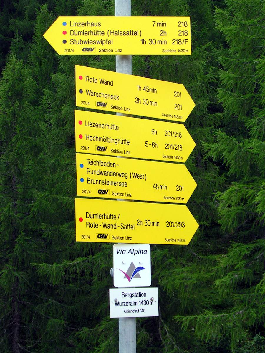 Beschilderung auf der Wurzeralm Foto: Christina Schwann, ökoalpin