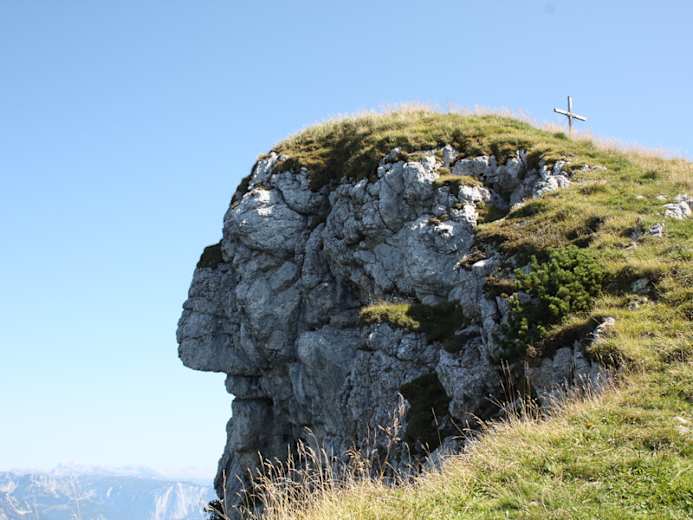 Beim Aufstieg zum Gipfel darf man nicht den „Kalmberg-Indianer“ verpassen: Eine Laune der Natur hat diesen aus dem Felsen herausgeschlagen.