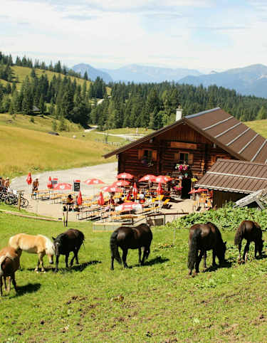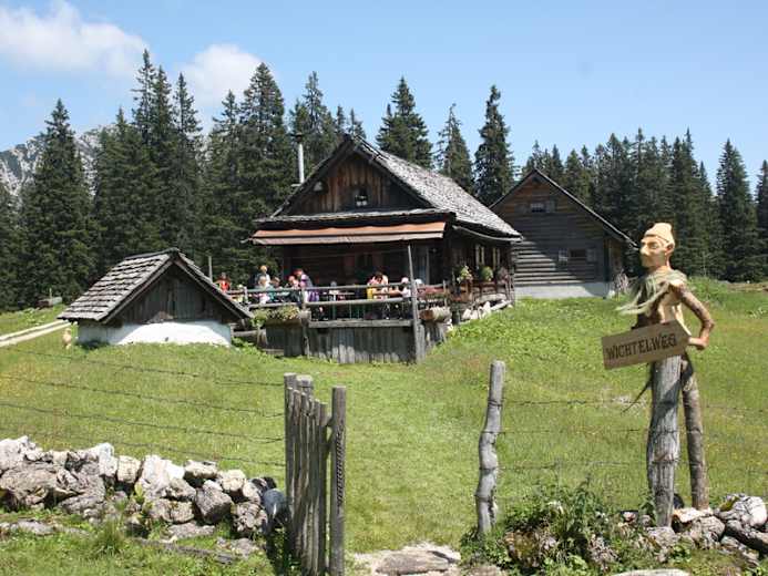 Nach so vielen Abenteuern kann man sich in der Plankensteinalm noch mit einer Wichteljause stärken, bevor es mit dem Gosauer Bummelzug wieder zurückgeht.