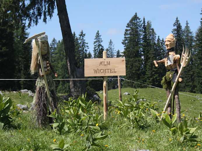 Auf die Spuren der Wichtel können sich große und kleine Wanderer in den oberösterreichischen Salzkammergut-Bergen begeben. Entlang des Wichtelweges rund um Gosau gibt es viele lustige Attraktionen, bei denen Kinder sich aktiv betätigen können: Mit einem Floß wird der Wichtelsee überquert, der Almwichtel braucht Hilfe bei der Heuarbeit, der Jägerwichtel will endlich den Wildererwichtel erwischen und dem Hochknechtwichtel kann man bei der Waldarbeit über die Schulter schauen. Höchster Punkt dieser leichten Tour: 1.532 m.