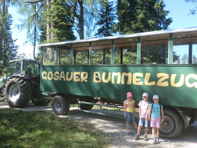 Auffahrt mit dem Bummelzug vom Tourismusbüro in Gosau. Anmeldung beim Tourismusbüro