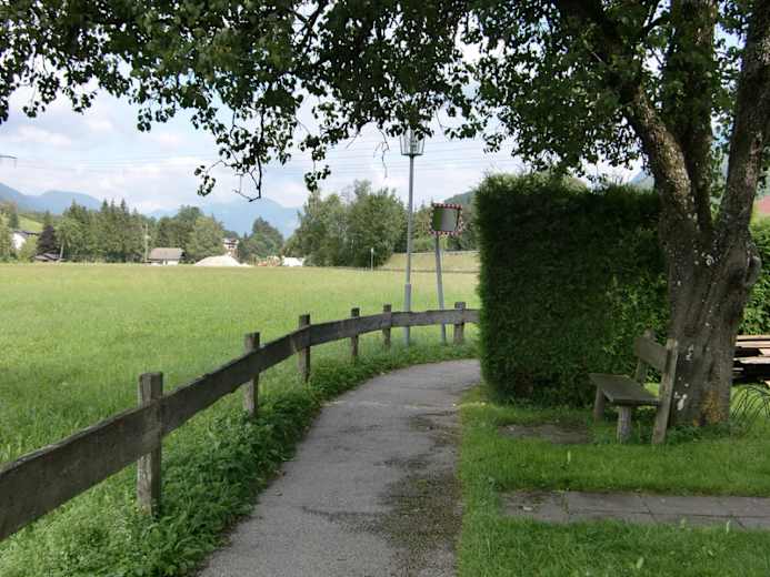 Hier links und sogleich wieder rechts auf den Zäpfensteig gehen über Urschlag zum Gasthaus Mahdhäusl. Rechts zweigt man hinunter bis zur Bundesstraßeab, geht abermals rechts über den Steg, dann unter der Bundesstraße durch zum Lipphaus (Heimatmuseum), links zum Bahndamm und rechts über den Sportplatz nach Osten zurück zum Ausgangspunkt.